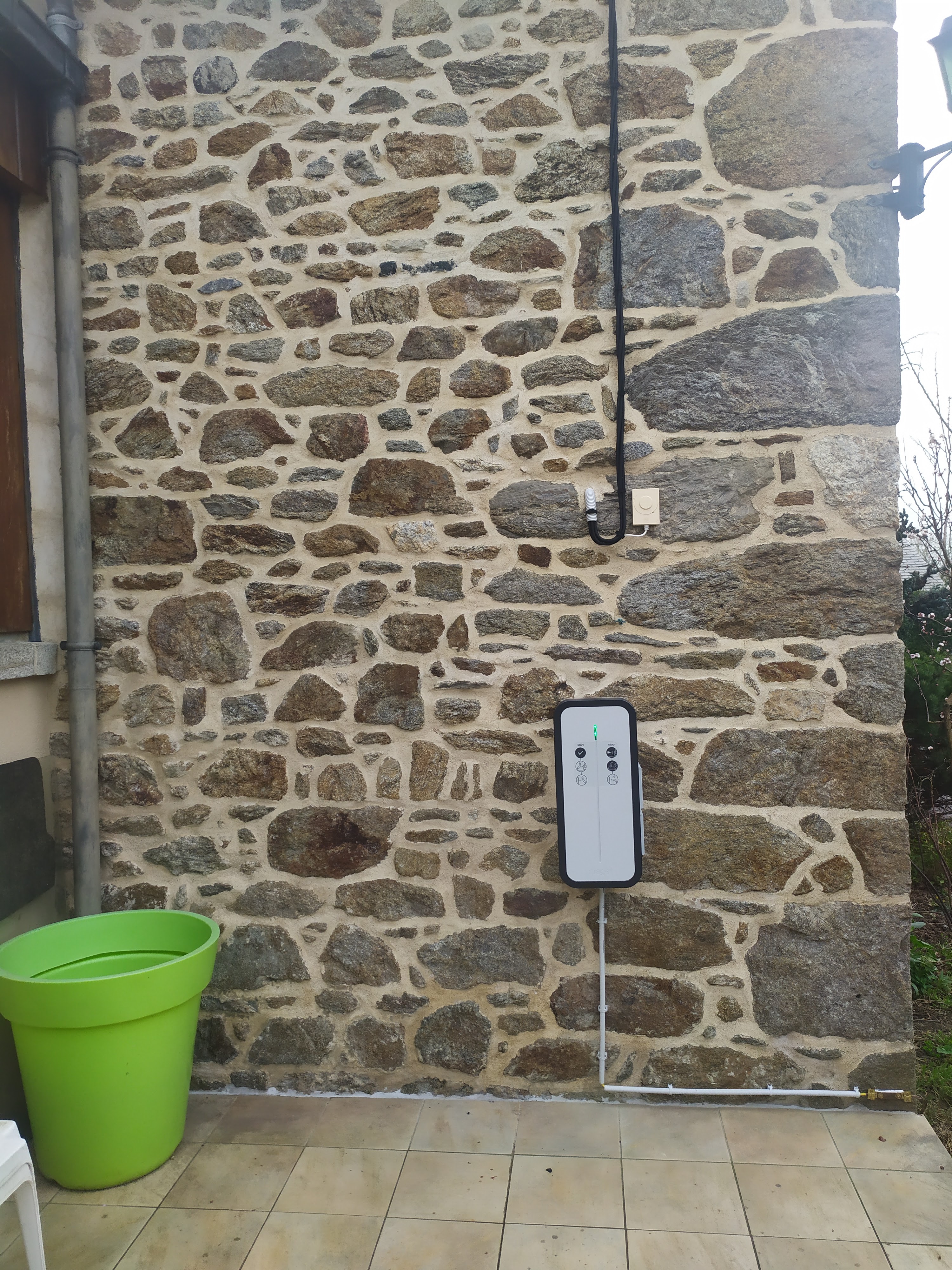 installation parfaite avec perçage d'un mur près du compteur électrique. Grande satisfaction.