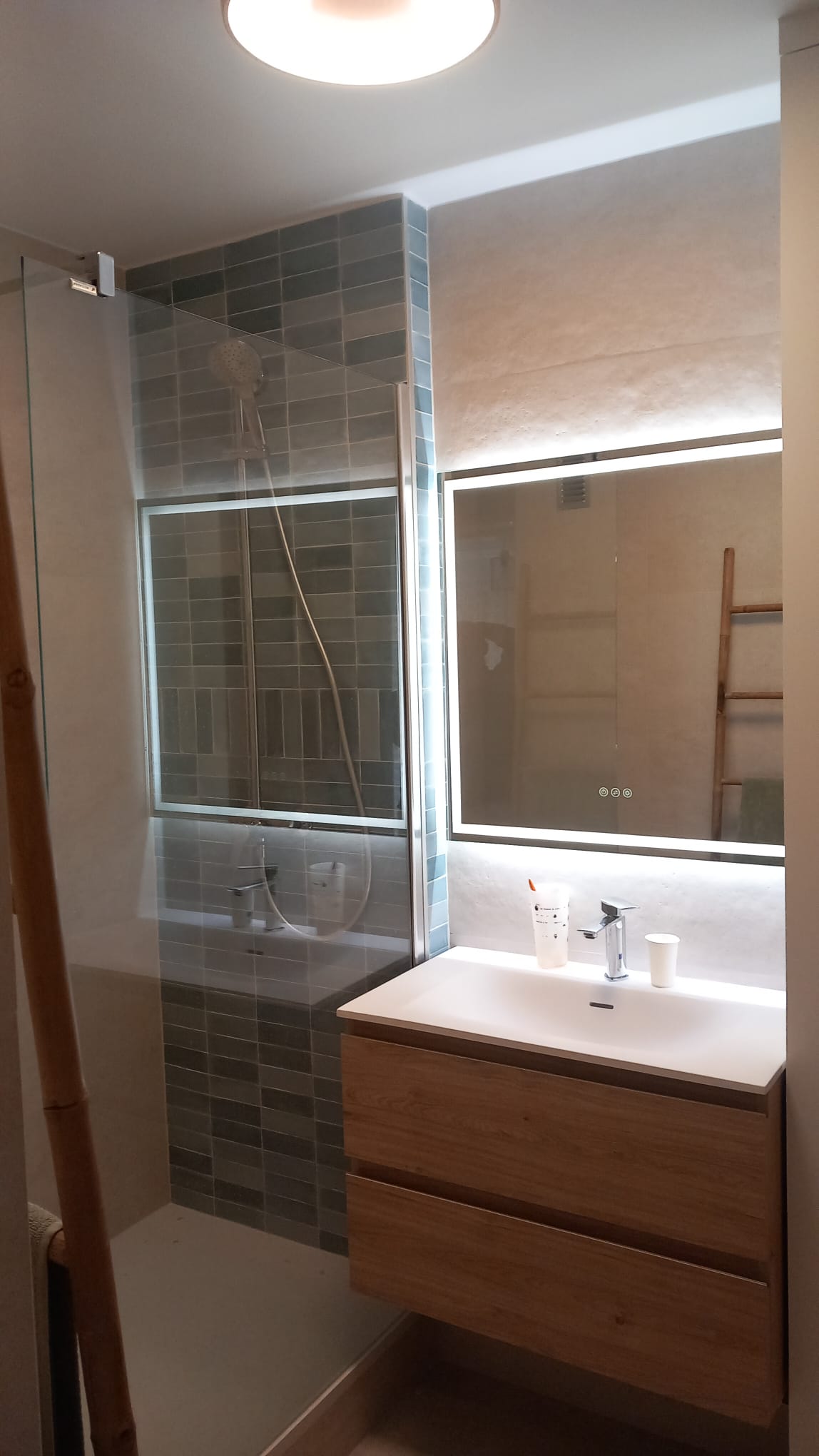 Un projet de chambre salle de bain dans une ancienne cuisine d’une vieille maison. Plusieurs contraintes techniques que Thierry et son équipe ont su contourner. Nous avons laissé les clés en toute confiance, un chantier bien rangé, le reste de la maison bien protégé. Une équipe très à l’écoute, soucieuse de nous satisfaire, des échanges quotidiens agréables, des gestes réfléchis. Nous sommes ravis du résultat. Merci à Thierry, Viorel, Oleg et le reste de l’équipe.