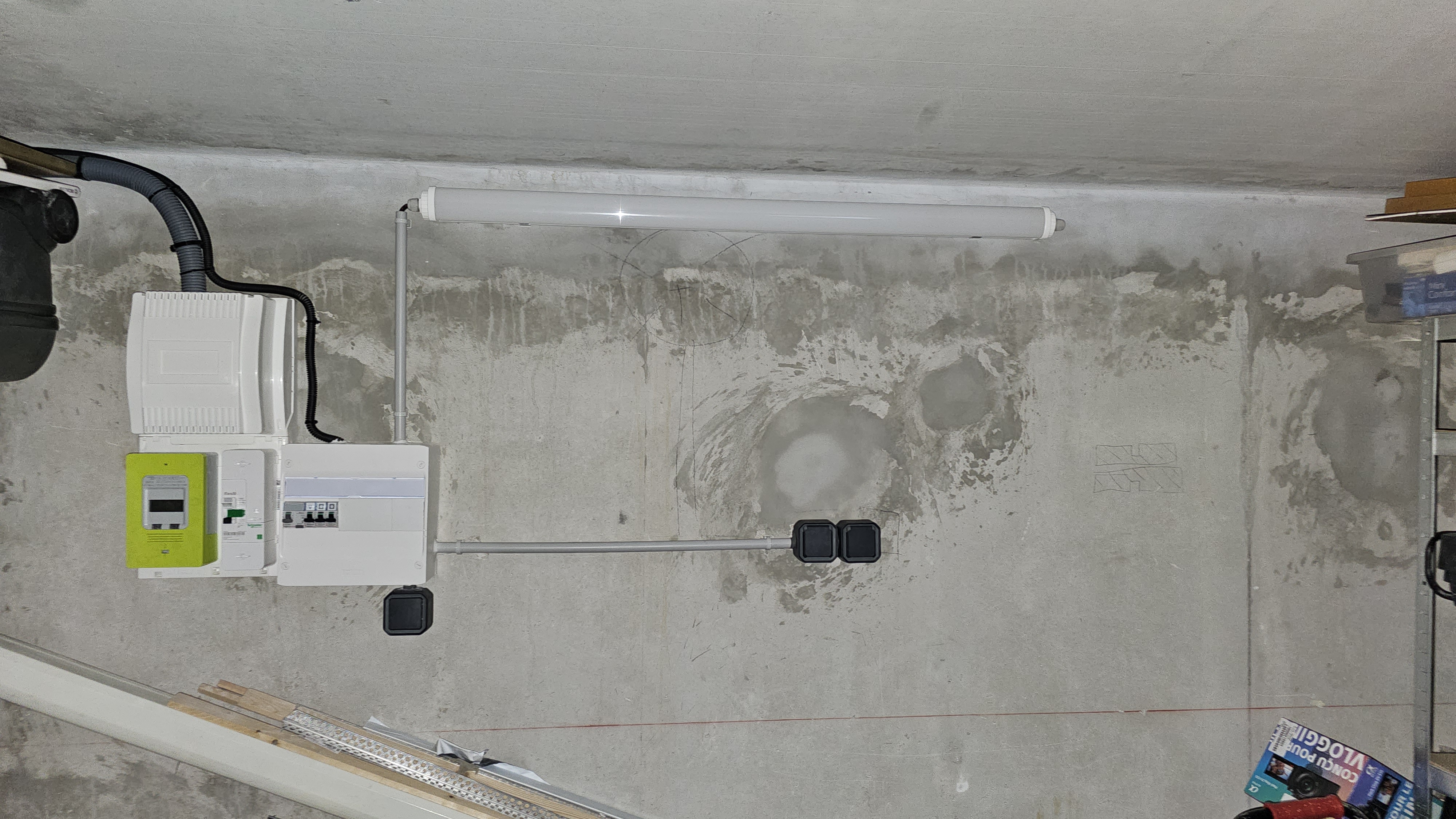 Realisation d'une installation dijoncteur , différenciel, prises securisées, éclairage pour VE dans un garage d'une grosse copro pour equiper . Parfait de l'installation au document CONSUEL.